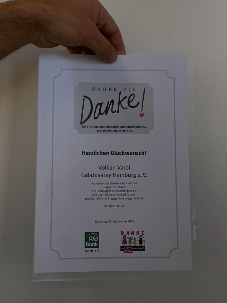 Unser Präsident Volkan Varol wurde vom Hamburger Abendblatt, dem Verein Hamburger Abendblatt hilft e.V und der PSD Bank ausgezeichnet und geehrt.